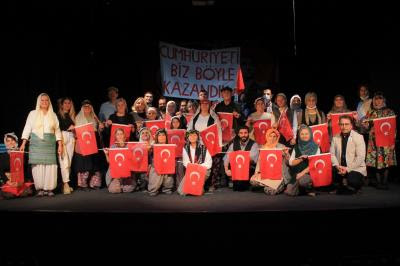 Gönüllülük esasıyla yürütülen çalışmalara kısa sürede yaklaşık 60 katılımcı, 2 ay boyunca sanatçı Vedat Murat Güzel’in yönetiminde 4 eğitmenden tiyatro, müzik ve sanat eğitimleri aldı. Eğitimler sonucunda iki aylık sürede "Cumhuriyetimiz" adlı oyunu hazırlayan katılımcılar ilk oyunu Kültürpark’taki İzmir Sanat Merkezi’nde sahneledi.