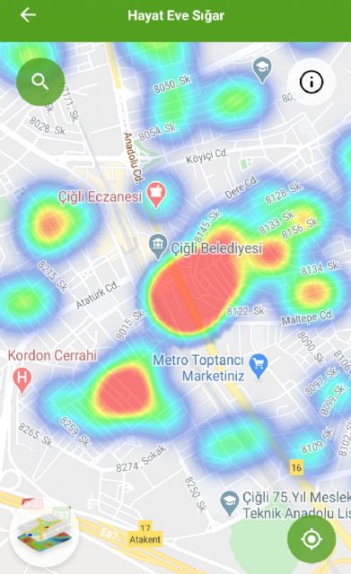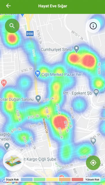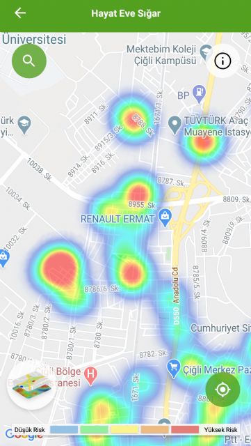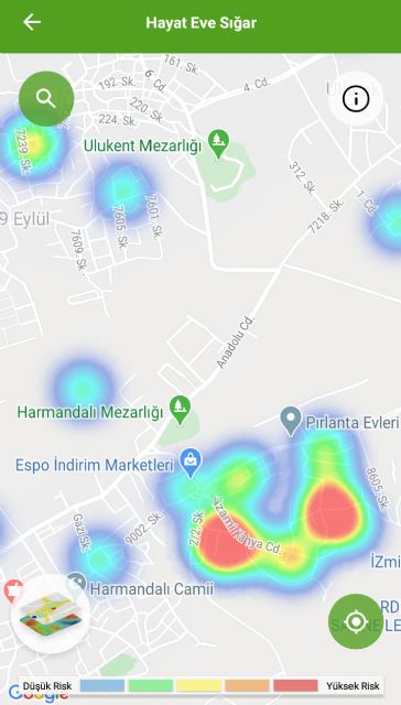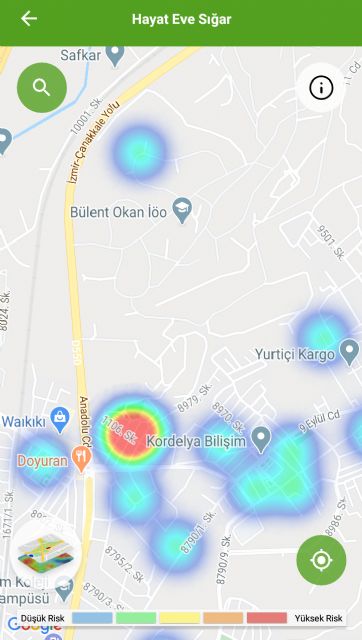 Sağlık Bakanlığı tarafından hazırlanan Hayat Eve Sığar uygulaması bir süreden bu yana vatandaşlar tarafından kullanılıyor. Uygulama ile korona virüs yoğunlukları bölge bölge görülebiliyor.