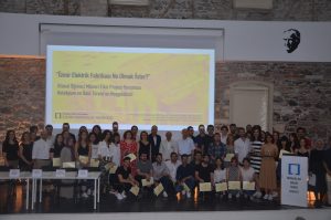 Yarışmada ödül alan öğrencilerin plaketlerini Başkan Tunç Soyer ve Mimarlar Odası İzmir Şube Başkanı Halil İbrahim Alpaslan takdim etti.