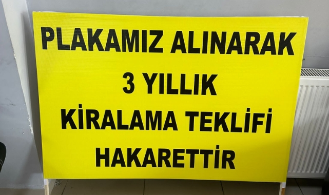 "Belediye bize 'Danıştay iptal etti, biz kararı uygularız, plakaları getirin ya da plakaları size ihale bedeli olarak 3 yıllık kiralık verelim' diyor. Bizi düşünmüyorlar, biz bu plakaları alırken evimizi, çocuklarımızın altınlarını satarak zor şartlarda satın aldık. Belediyenin kiralama teklifini kabul etmeyeceğiz. Biz ev satın almışız, belediye bize 'sen bu evde kiracı ol' diyor. Biz plakamızı alıp, alnımızın terini o plaka üzerinden evimizi geçindirmek istiyoruz."