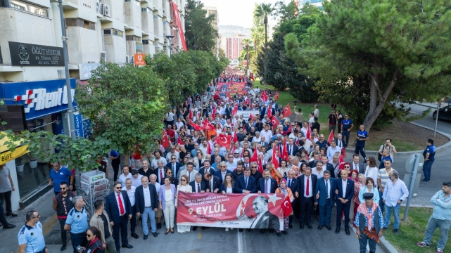 İzmir'de kurtuluşun 102'nci yıl dönümü kutlamaları kapsamında 9 Eylül Zafer Yürüyüşü düzenledi. Türk ordusunun 9 Eylül 1922'de İzmir'e girerken kullandığı güzergah üzerinde düzenlenen yürüyüş, Basmane Karakolu önünden Cumhuriyet Meydanı'na kadar devam etti. Yürüyüşe İzmir Büyükşehir Belediye Başkanı Dr. Cemil Tugay'ın yanı sıra CHP, AK Parti, MHP, İYİ Parti, Demokrat Parti milletvekilleri, siyasi parti temsilcileri, ilçe belediye başkanları, meclis üyeleri, bürokratlar, iş dünyası, sivil toplum örgütlerinin temsilcileri ve binlerce İzmirli katıldı.