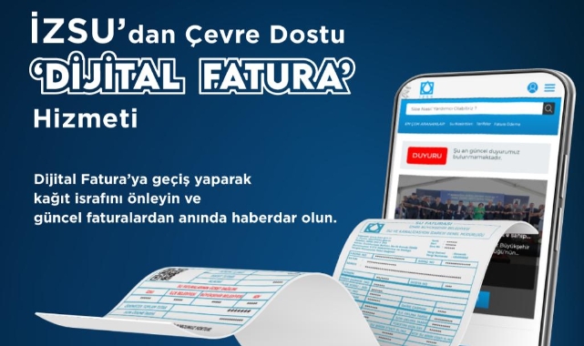İzmir Büyükşehir Belediyesi İZSU Genel Müdürlüğü, 2 milyon abonesine dijital fatura ile hizmet vermeye hazırlanıyor. Teknolojinin olanaklarını doğa dostu yaklaşımla birleştiren uygulamalarla vatandaşlara daha hızlı ve etkin hizmet sağlanması hedefleniyor.