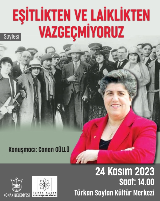 Konak Belediyesi ve İzmir Kadın Kuruluşları işbirliğinde 24 Kasım’da düzenlenen etkinliklerle Kadına Yönelik Şiddete Karşı Uluslararası Mücadele Günü’ne dikkat çekilecek. Basın açıklaması, resim sergisi ve söyleşiden oluşan peş peşe etkinliklerde Konak Belediye Başkanı Abdül Batur, Türkiye Kadın Dernekleri Federasyonu Başkanı Canan Güllü, İzmir Kadın Kuruluşları Birliği Başkanı Gülsen Özkan ve birliğe bağlı 109 kadın sivil toplum kuruluşunun temsilcileri yer alacak.Kadının sesi duyulacakKadına Yönelik Şiddete Karşı Uluslararası Mücadele Günü etkinlikleri kapsamında, Türkiye Kadın Dernekleri Federasyonu Başkanı Canan Güllü, “Eşitlikten ve Laiklikten Vazgeçmiyoruz” başlığı altında bir söyleşi gerçekleştirecek. 24 Kasım tarihinde yapılacak söyleşi Türkan Saylan Kültür Merkezinde saat 14.00’te başlayacak. Söyleşi öncesi ise Türkan Saylan Kültür Merkezi önünde, Konak Belediye Başkanı Abdül Batur ve 109 kadın sivil toplum kuruluşu temsilcisinin katılacağı bir basın açıklaması gerçekleştirilecek.