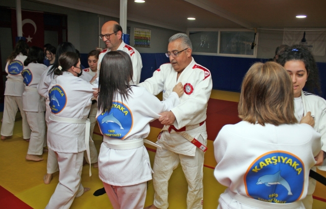 Karşıyaka Soroptimist Kulübü üyeleri ve bursiyerleri Celal Atik Spor Salonu Judo Salonu’nda, judogi kıyafetini giyerek tatamiye çıktı. 8 Mart Dünya Kadınlar Günü etkinlikleri kapsamında başlatılan eğitimde kadınların kendilerini olası şiddet girişimlerine karşı savunmaları hedefleniyor.