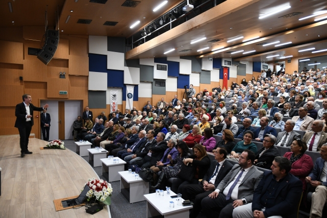 Tarihçi Yazar Sinan Meydan’ın akıcı bir şekilde, görseller eşliğinde yaptığı sunumu, Başkan Selvitopu’nun yanı sıra, CHP’nin İzmir İl Başkan Yardımcısı Polat Manduz, İlçe Başkanı Mehmet Türkbay, İl Kadın Kolları Başkanı Nurdan Şenkal Uçar, Eğit-Der İzmir Şube Başkanı Nevzat Çakmak, ADD Şube Başkanı Mehmet Galip Gelebene, Karabağlar Kent Konseyi Başkanı Alev Ağrı, meclis üyeleri, muhtarlar, siyasi parti ve sivil toplum kuruluşlarının temsilcileriyle çok sayıda vatandaş izledi. Salona sığmayan vatandaşlar, girişe kurulan büyük ekranlardan söyleşiyi izleme olanağı buldu.Düşünceleriyle yaşıyorSaygı duruşu ve İstiklal Marşımızın okunmasının ardından etkinliğin açılış konuşmasını yapan Başkan Selvitopu, Ulusal Kurtuluş Savaşı’nın Önderi ve Cumhuriyetimizin Kurucusu Mustafa Kemal Atatürk’ün, düşünceleriyle yaşamaya devam ettiğini söyledi. Atatürk’ün, Fidel Castro’nun dediği gibi “Öldükten sonra ülkesini yöneten tek lider” olduğunu vurgulayan Başkan Selvitopu, “Hiçbir gücün O’nun düşüncelerini yok etme şansı yoktur. Çünkü o düşüncelerin içinde bilim, akıl ve objektif bakış açısı vardır. Karabağlar Belediyesi olarak O’nu rahmetle, minnetle, saygı ve sevgiyle anıyoruz. İzinden gitmeyi onur ve görev sayıyoruz. Cumhuriyet var oldukça Mustafa Kemal Atatürk ve düşünceleri de ilelebet yaşayacaktır” dedi.