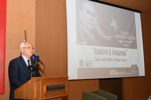 Karabağlar Belediyesi, Ulu Önder Mustafa Kemal Atatürk’ü aramızdan ayrılışının 84. yılında, Tarihçi Yazar Sinan Meydan’ın “Atatürk’ü Anlamak” başlıklı söyleşisiyle andı. Eğit-Der İzmir Şubesi ve Atatürkçü Düşünce Derneği Karabağlar Şubesi katkılarıyla düzenlenen etkinlik, Yıldız Kenter Kültür ve Sanat Merkezi (YKSM) Konferans Salonu'nda gerçekleştirildi. Vatandaşların yoğun ilgi gösterdiği ve salona sığmadıkları etkinlikte Meydan, Atatürk’ü tüm yönleriyle, 2 saati aşkın sürede anlattı. Meydan, Mustafa Kemal’in ulusuna ve vatanına olan bağlılığını vurgulayarak, “O, en zor koşullarda bile umudunu hiç kaybetmedi” dedi. Karabağlar Belediye Başkanı Muhittin Selvitopu da, Atatürk’ün düşüncelerinin Cumhuriyet var oldukça yaşayacağını vurguladı.