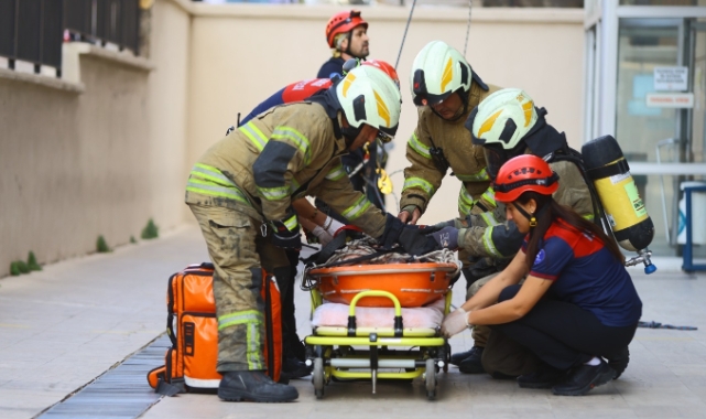 Karabağlar Belediyesi ana hizmet binası ve açık otopark alanında yapılan tatbikat, gerçeğini aratmadı. Senaryo gereği binada çıkan yangına hızla müdahale edilerek, çatı katında mahsur kalan personel güvenli şekilde tahliye edildi. Kurtarma çalışmaları başarıyla uygulanırken, tatbikatta Güvenlik ve Zabıta birimleri de aktif rol aldı.