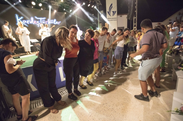 Halkların kardeşliği tanımını müzikle buluşturduklarını söyleyen Güzelbahçe Belediye Başkanı Mustafa İnce, “Anadolu coğrafyasının tüm halklarının ezgilerini, orijinalliğini bozmadan kendi dillerinde, kültürlerinde söyleyen Kardeş Türküler bu gece bizleri mest etti. Halkların kardeşliği söylemiyle yola çıkmış, her dilden, her ezgiden kalplerimize dokunan türkülerle hem coşturdu hem hüzünlendirdi. Barışın, kardeşliğin hep birlikte bir arada olmanın değerini, söylemiş oldukları ezgilerde buluşturan Kardeş Türküler bir Anadolu mozaiği. Kadim Anadolu halkları bu coğrafya da yaşamış, dillerini, kültürlerini ve ezgilerini bu coğrafya için söylemişler. Kardeş Türküler’de bu ezgileri bizlerle buluşturarak, bizlere adeta Anadolu ezgileriyle gezi düzenlediler. Gazi Mustafa Kemal Atatürk’ün ‘yurtta barış, dünyada barış, söyleminin bizler için önemi çok büyük. Artık savaşlar olmasın, herkes barış içinde kardeşçe yaşayabilsin. Bu vesileyle 1 Eylül Dünya Barış Günü’müz kutlu olsun” dedi. Başkan İnce, Kardeş Türküler ekibine çiçek taktim ederek teşekkür etti.