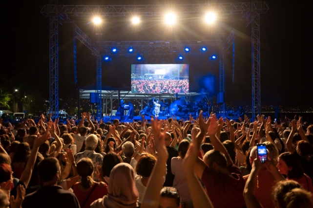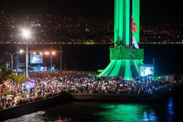 NAZAN ÖNCEL’DEN UNUTULMAZ KONSERZeybek gösterisinin ardından, kurtuluş kutlamaları çok özel bir konser ile taçlandı. Karşıyakalı sanatçı Nazan Öncel, en sevilen şarkılarını binlerce kişiyle birlikte seslendirdi, hemşehrilerine hafızalardan silinmeyecek bir müzik ziyafeti sundu. Karşıyaka Belediye Başkanı Dr. Cemil Tugay da eşi Öznur Tugay ile birlikte sahneye çıkarak Öncel’e teşekkür çiçeği takdim etti. Ayrıca kanun yapım ustası Burçin Bayar Babaoğlu, geri dönüşüm malzemeleri ile tasarladığı müzik aletini Başkan Tugay ile birlikte Nazan Öncel’e armağan etti.“9 Eylül’ümüzü doyasıya kutladık. Çok teşekkür ederiz. Sizinle gurur duyuyoruz” ifadelerini kullanan Tugay, Öncel ile aralarında geçen keyifli sohbette sanatçının adını Karşıyaka’da bir caddeye vermek istediklerini belirterek “Siz her şeye layıksınız” dedi. Nazan Öncel de “Söz verdiler kendileri. 1 Ekim’de yine geliyorum, kurdeleyi keseriz” diye konuştu ve gecede seyircilerine şöyle seslendi: “Ben her dönemin sanatçısı olmadım. Bir Cumhuriyet kadını olarak, Atatürk ilkelerine bağlı olarak bugüne geldim. Hep beraber geldik. 100. yılımız kutlu olsun. Ben İzmirliyim, aynı zamanda 35.5’luyum. En son buradan İstanbul’a gittiğimde 1986 senesinde şu evlerden birinde, Ali Bey Apartmanı’nda oturuyordum; 7 . katta. Karşıyaka'mı selam, sevgi ve bin saygı ile kucaklıyorum.”