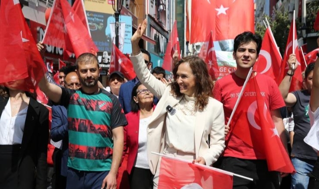 COŞKU DOLU BAYRAM KORTEJİTörenin ardından Karşıya Belediyesi tarafından “19 Mayıs Korteji” düzenlendi. Belediye önünde bir araya gelen vatandaşlar, Karşıyaka Belediye Bandosu’nun çaldığı marşlar eşliğinde Çarşı’ya yürüdü. Çevredeki esnaf ve balkonlardaki Karşıyakalılar da coşkulu kalabalığa alkışlarla destek verdi. Hergele Meydanı’na ulaşan katılımcılar, finalde hep bir ağızdan İzmir Marşı’nı okudu.