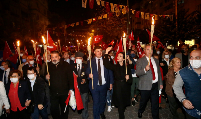 Karşıyaka Belediye Başkanı Dr. Cemil Tugay “Cumhuriyet Bayramımızı bu yıl da her zamanki gibi coşkuyla, onurla ve asla sarsılmaz bağlılıkla kutluyoruz. Büyük Önderimiz Gazi Mustafa Kemal Atatürk başta olmak üzere; bu güzel vatanı bize armağan eden tüm Cumhuriyet kahramanlarını sonsuz minnet, vefa, saygı ve sevgiyle anıyoruz. Bize bırakılan emaneti, Mustafa Kemal Atatürk’ün işaret ettiği hedeflere doğru taşımaya devam edeceğiz” dedi.