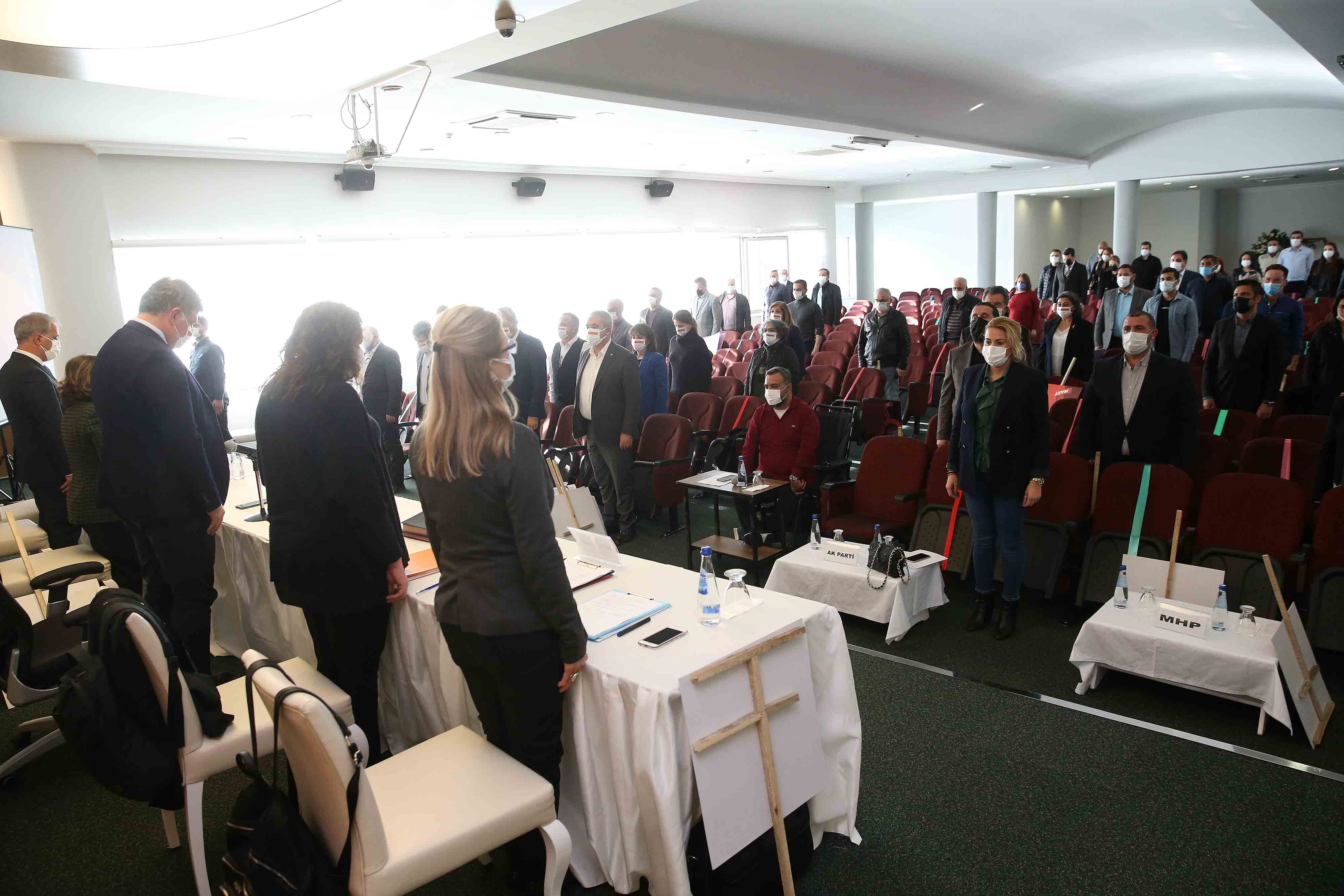 ŞEHİTLER İÇİN SAYGI DURUŞUOylamanın ardından dilek ve temenniler kısmında, Bitlis’te meydana gelen helikopter kazasında yaşamını yitiren şehitler anıldı. Karşıyaka Belediye Başkanı Dr. Cemil Tugay, “Gerçekten çok üzgünüz. Tüm şehitlerimize Allah'tan rahmet diliyoruz. Tüm ulusumuzun başı sağolsun. Benzeri felaketlerin yaşanmamasını diliyoruz. Üst üste geçtiğimiz haftalarda çok acı haberler aldık. Hayatını kaybeden tüm evlatlarımız bizim canımız ciğerimiz. Onlara zarar veren herkes de bizim düşmanımızdır. Ailelerinin bu acı olay sonrası bizimde ailemiz olduklarını bilmelerini isterim” dedi.