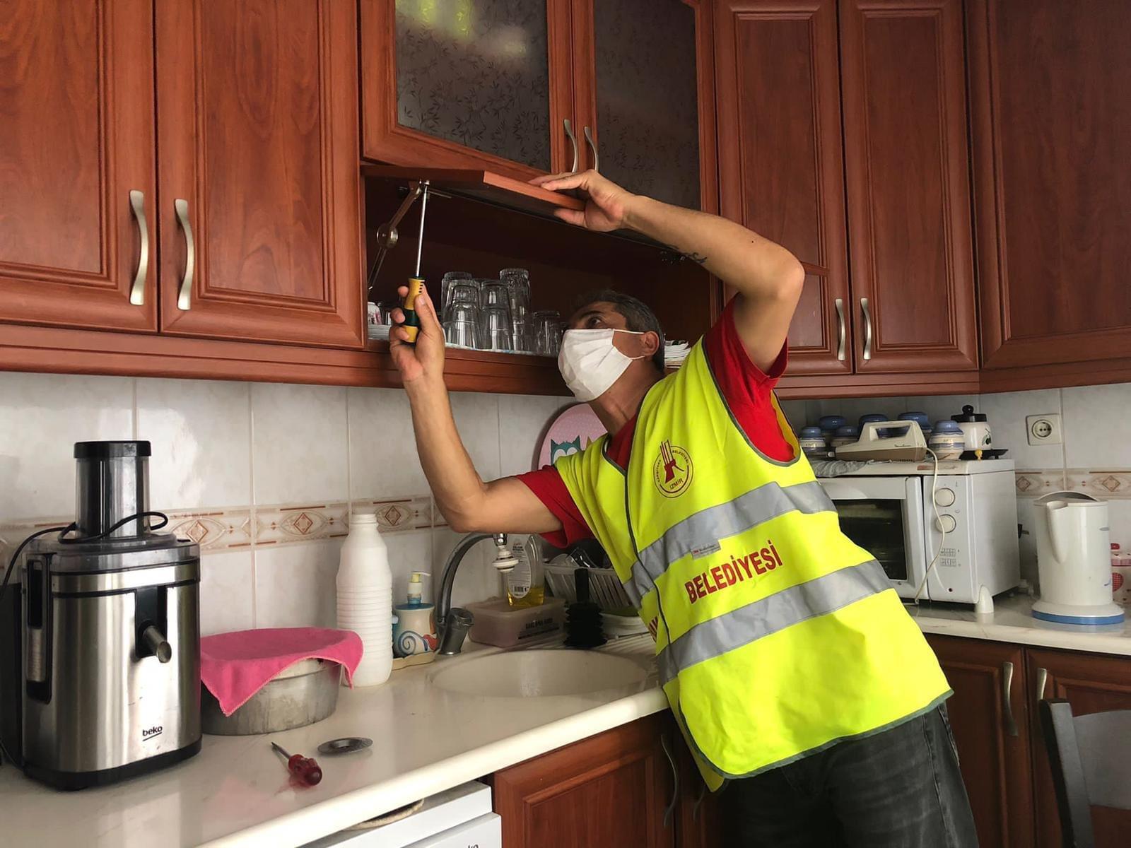 EVDE TAMİR HİZMETİBu faaliyetlerin yanı sıra 65 yaş üstü vatandaşlar için evde tamir hizmeti de faaliyete geçirildi. İsteyen vatandaşlar evlerindeki küçük arıza, tamir ve bakım ihtiyaçları için belediyeden hizmet talep edebiliyor. 444 1 575 numaralı çağrı merkezi ile 0530 125 1355 numaralı Whatsapp ihbar hattını arayan 65 yaş üstü vatandaşlara ücretsiz bir şekilde hizmet veriliyor. Oluşturulan ekip, ihbar üzerine gittiği evlerde küçük arıza tamir ve bakımları gerçekleştiriyor.