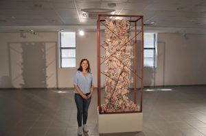 Çalışmasında demiri kullandığını ifade eden Aydoğdu; “Demiri kullanmamda ki amacım demir benim için gücü simgeliyor. Çok zor işlenen çok zor dönüşebilen bir madde. İnsanoğlu da öyle ama işte bu gücün içinde var olmak yerine genelde birbirimizi yok ederek bu gücümüzü harcıyoruz. Ben onu anlatmak istedim. İçinde hapsolmuş ellerle de bizleri, kaybolan bizleri anlatmak istedim. Aslında böyle olmamalı, yarım kalan demirler birleşmeli, o güç ile yeni güzel şeyler doğmalı. Bu ellerin kurtulduğu, özgürlüğüne kavuştuğu daha güzel zamanlarımız olur, bizler daha güzel şeyler yapabiliriz, umarım herkese bir şeyler hissettirebilmişimdir. Bizleri yetiştiren çok değerli hocalarımız var, umarım bizlerde yeni değerli güzel insanlar yetiştirebiliriz, hayatı güzelleştirebiliriz. Ben yok etmenin yanında var etmeyi de koydum çalışmanın içerisine. Emeği geçen sınıf arkadaşlarıma ve hocalarıma çok teşekkür ediyorum” dedi.