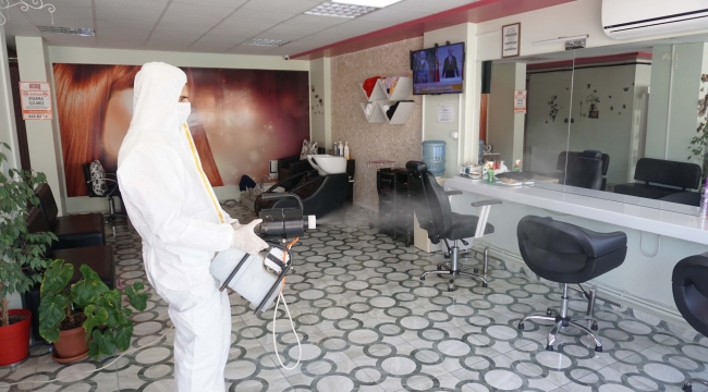 Kemalpaşa'da berber ve kuaförler dezenfekte ediliyor