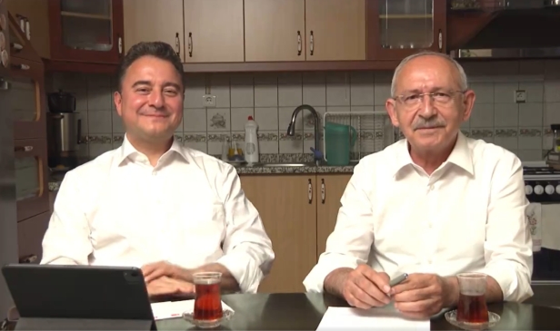 Kılıçdaroğlu evinin mutfağında Babacan’ı ağırladı: Yakında şampiyonlar ligi kadrosunu göreceksinizDEVA Partisi Genel Başkanı Ali Babacan, Millet İttifakı’nın Cumhurbaşkanı adayı ve CHP Genel Başkanı Kemal kılıçdaroğlu ile birlikte bir sürprizleri olacağını duyurmuştu.Babacan’ı evinin mutfağında misafir eden Kılıçdaroğlu, videoda ekonomi ile ilgili konuları ele aldı.Kılıçdaroğlu, “Türkiye’ye hızlı nefes aldırıp bizi bu krizden çıkaracak ve sonrasında da kalıcı refahı sağlayacak ekipler hazır. Dünyada çok saygı gören, yurt dışında ve yurt içinde çalışan akademisyenlerimiz, deneyimli bürokratlarımız var o ekipte. Millet İttifakı’nın tüm paydaşlarından ekonomi alanında uzman isimler ki birkaç gün içerisinde bu şampiyonlar ligi kadrosunu da göreceksiniz” dedi.Kılıçdaroğlu konuşmasının sonunda, “Bu ülkeyi rayını oturttuktan sonra huzurla emekli olup, bu ekibin çalışmalarıyla gururlanacağım” ifadelerini kullandı.Babacan ise “Ekonomi yönetimi, kadro meselesidir. İyi yetişmiş, dürüst ve ehil kadrolarla ancak ülkenin ekonomik sorunları çözülebilir. Dolayısıyla bu kadroları da şimdiden çalışıyoruz, hazırlıyoruz. Pek yakında da peyderpey ekibimizdeki güzel, düzgün insanları tanıyacaksınız. Tanıdıkça da onları çok seveceksiniz” diye konuştu.İşte o video: