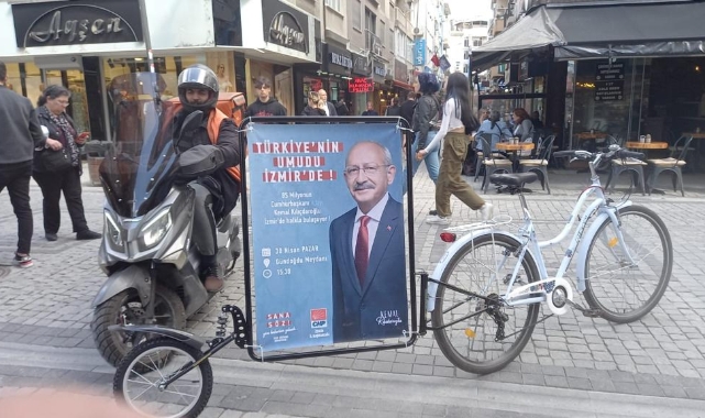14 Mayıs'ta gerçekleştirilecek Cumhurbaşkanı ve 28. Dönem Milletvekili Seçimleri öncesi calışmalarını aralıksız sürdüren CHP İzmir İl Başkanlığı, kampanya yöntemleriyle de fark yaratıyor. CHP Lideri ve Millet İttifakı Cumhurbaşkanı Adayı Kemal Kılıçdaroğlu'nun 30 Nisan 2023 Pazar günü saat 15.30'da Gündoğdu Meydanı'nda gerçekleştireceği büyük buluşmayı İzmir'de herkesin duyması için her platformda davetler yapan CHP'liler, bisikletlerle en çevreci miting davetini gerçekleştirdi. Kentin işlek caddeleri ve meydanlarında çevreyi kirletmeden, gürültü kirliliği yaratmadan bisikletlerle yapılan miting daveti, büyük ilgi gördü. Büyük fark yaratan alternatif tanıtıma özellikle gençlerin ilgisi dikkat çekti. Partinin bütün seçim kampanyası süresince çevreci propaganda yöntemlerini benimsediklerini vurgulayan CHP İzmir İl Başkanı Şenol Aslanoğlu, çalışmaların farklı meydanlarda sayısının artırılarak devam edeceğini belirtti. Bisikletli miting davetlerine İzmirlilerin gösterdiği ilgiye teşekkür eden Aslanoğlu, "14 Mayıs'ta tüm Türkiye'de bir tarih yazılacak ve İzmir mitingi bu tarihin köşe taşlarından biri olacak. Tüm halkımızı olabilecek en güzel yollarla davet etmek istiyoruz. Bu miting için de bisikletlerle yaptığımız çalışma en anlamlı çalışmalarımızdan oldu" diye konuştu.