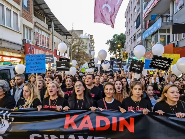 Konuşmasına “Lanetliyorum, lanetliyoruz, kadına kalkan eller kırılsın diyoruz” sözleriyle başlayan Torbalı Belediye Başkanı Övünç Demir’de, cinayete kurban kadınları anarak şunları söyledi;