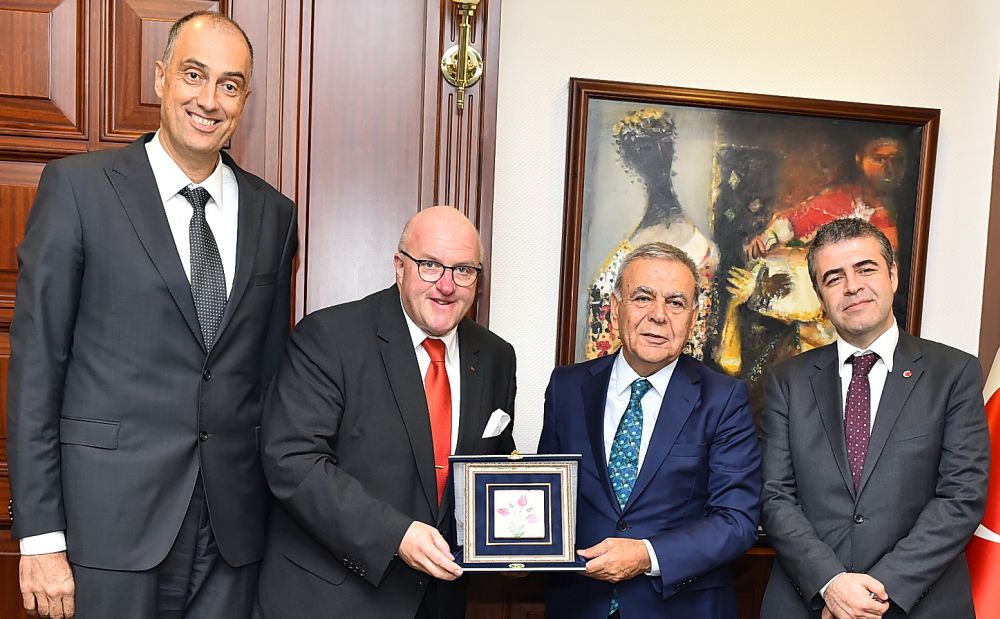 Türkiye'nin 2023 Dünya Basketbol Şampiyonası'nın ev sahibi olabilmek için verdiği mücadeleye destek amacıyla FIBA Başkanı Horacio Muratore’ye bir mektup gönderen İzmir Büyükşehir Belediye Başkanı Aziz Kocaoğlu, şimdi de Dünya Basketbol Federasyonu Yönetim Kurulu Murahhas Üyesi Ingo Weiss'i ağırladı. Başkan Kocaoğlu, Türkiye'nin ev sahibi olması durumunda grup maçlarının oynanacağı şehirler arasında İzmir'in de yer alması nedeniyle, Weiss'tan Aralık ayındaki oylama için destek istedi. İzmir Büyükşehir Belediye Başkanı Aziz Kocaoğlu, Türkiye'nin 2023 Dünya Basketbol Şampiyonası ev sahibi adaylığı kapsamında Dünya Basketbol Federasyonu (FIBA) heyetini ağırladı. Aralarında İzmir'in de bulunduğu dört şehirde yapılması öngörülen organizasyon için destek mektubu gönderen Başkan Kocaoğlu, FIBA Dünya Yönetim Kurulu Murahhas Üyesi Ingo Weiss ile bir araya geldi. Ziyarette Türkiye Basketbol Federasyonu (TBF) Genel Sekreteri Serbülent Şengün ve TBF Uluslararası İlişkiler Direktörü Emir Turam da yer aldı. FIBA Yöneticisi Ingo Weiss'a kent ve spor tesisleri hakkında bilgi sunan Başkan Aziz Kocaoğlu, Türkiye'nin organizasyonu başarıyla yerine getireceğinden şüphesi olmadığını, İzmir olarak da üzerlerine düşen görevi yapacaklarını söyledi. Edindiği izlenimlere göre İzmir'in güzel bir spor kenti olduğunu belirten Ingo Weiss ise "Sayın Belediye Başkanı spora büyük destek veriyor. Bu çok güzel bir şey" diye konuştu.