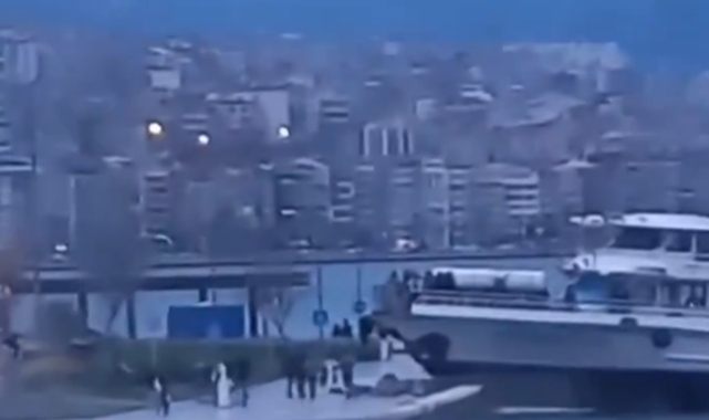 İzmir Konak'ta vapur karaya çıktı. O anlar vatandaşlar tarafından görüntülendi.