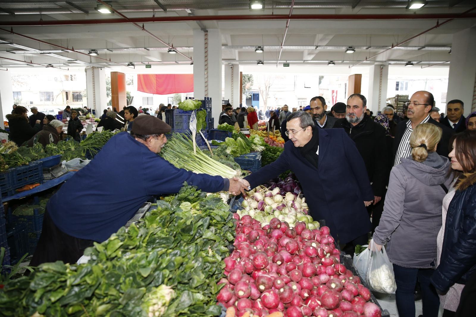 Konak Belediyesi’nin Toros'ta inşa ettiği çok amaçlı sosyal tesis içinde yer alan 137 tezgâhlı kapalı pazaryeri hizmete girdi. 4 Şubat'ta yapılan kura çekimiyle yerleri belirlenen esnaf tezgâhlarını kurup, ilk satışlarını yaparken, vatandaşlar da modern bir pazaryerine kavuşmanın mutluluğunu yaşadı.Batur, yeni pazaryerinde incelemelerde bulundu