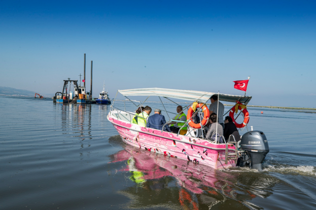 “Körfez’de yüzme heyecanı birlikte yaşayacağız”Başkan Soyer, “Bugün Dünya Çevre Günü münasebetiyle şunu söyleyebilirim ki, Körfez’i yüzülebilir hale getirebilmek için dev adımlar atılmış durumda. Sessiz sedasız atılan bu adımlarla çok önemli yol alındı. Önümüzdeki yıllarda kalıcı çözümlerin devam etmesiyle, ilerlemesiyle çok daha kıymetli sonuçlar alınacak. Niyetimiz gelecek nesillere pırıl pırıl bir Körfez bırakmak. Bugünden bunun müjdesini verebiliriz. Bu yaz kokuyu da daha az duyacağız. Çiğli Arıtma Tesisi’nin kapasitesinin de çok daha iyileştiğini göreceğiz. Diliyorum önümüzdeki günlerde de Körfez’de yüzme heyecanını hep birlikte yaşayacağız” ifadelerini kullandı. “Derinleştirme çalışması kokuyu büyük ölçüde azalttı”Saha turunda incelediği dip tarama çalışmalarının koku sorununa kalıcı çözüm için önemli bir adım olduğunu ifade eden Başkan Soyer, “Burada en önemli hedeflerden bir tanesi orta körfezde deşarj yapılan Çiğli Arıtma Tesisi suyunu dış körfeze aktarmak olacak. Asıl kalıcı çözüm orada yatıyor. Bu sığlaşmış orta körfezi Çiğli Arıtma Tesisi’nin deşarjından tamamen kurtarmak istiyoruz. Onun için tam çıkış noktasında yapılan derinleştirme çalışmalarının çok büyük etkisini gördük. Şu an üstünde bulunduğumuz çıkış noktasında olmamıza rağmen kokudan eser yok. Bu çalışma bile kokuyu önemli ölçüde azaltan bir sonuç doğurdu. Ama asıl kalıcı sonuç o deşarj noktasının orta körfezden dış körfeze aktarılması olacak. 4 kilometrelik bir güzergahla çıkış noktası değiştirilecek” dedi.