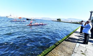 Cumhuriyet Meydanı’ndaki anıta çelenk sunma töreniyle başlayan Kabotaj Bayramı kutlamalarına, İzmir Büyükşehir Belediye Başkanı Tunç Soyer, Vali Yardımcısı Aydın Memük, İzmir Liman Başkanı Ahmet Apak ve İzmir Deniz Ticaret Odası Başkanı Yusuf Öztürk ile denizcilik sektöründen çok sayıda temsilci katıldı. Törenin ardından Denizcilik Müsteşarlığı İzmir Bölge Müdürlüğü önünde, Kabotaj Bayramı dolayısıyla yapılan halat çekme yarışı gerçekleşti. Yarışmanın kazananı Büyükşehir Belediye Başkanı Tunç Soyer ve Vali Yardımcısı Aydın Memük’ün de yer aldığı takım oldu. Halat çekme yarışmasının ardından ekip fotoğraf ve resim sergisini gezdi.