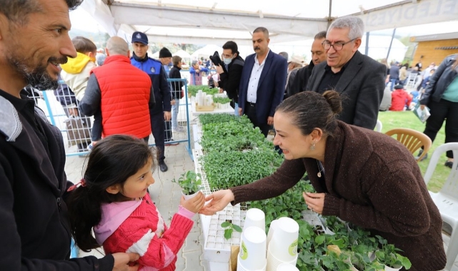 Başkan Ceritoğlu Sengel, çocuklarla birlikte Efes Tarlası Yaşam Köyü plantasyon alanında çocuklarla birlikte fide ekti.