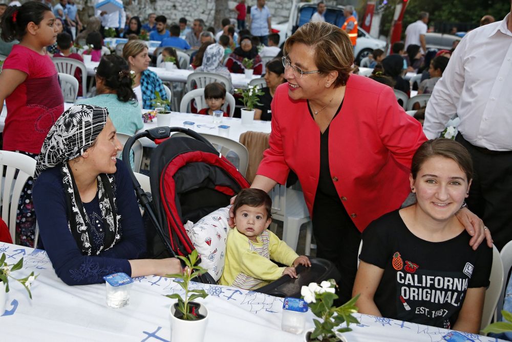 Konak Belediyesi’nin Ramazan ayı dolayısıyla mahallelerde düzenlendiği iftar sofrası bu kez Ballıkuyu Mahallesi’ndeki Yeşiltepe İlkokulu’nun bahçesinde kuruldu. İftar yemeğine Ballıkuyu, Akarcalı ve Yeşildere mahallelerinden vatandaşlar katıldı. Okul bahçesine kurulan masalarda buluşan yüzlerce kişi aynı anda oruç açtı. Konak Belediye Başkanı Sema Pekdaş’ın ev sahipliği yaptığı iftar yemeğine Cumhuriyet Halk Partisi (CHP) Konak İlçe Başkanı Çağrı Guruşçu, CHP Konak İlçe Kadın Kolları üyeleri ve mahalle muhtarları katıldı. Okunan ezanın ardından tüm davetliler Konak Belediyesi’nce ikram edilen çorba, İzmir köfte, pilav, ayran ve tatlıdan oluşan iftar mönüsüyle oruçlarını açtı.