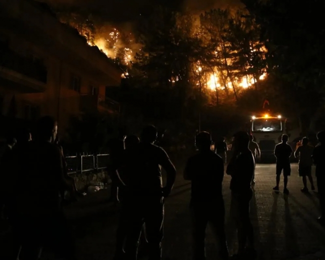 Rüzgarın da etkisiyle yayılarak İçmeler Mahallesi'ne ilerleyen yangını kontrol altında tutmak için ekipler, karadan gece boyunca çalışmasını sürdürdü