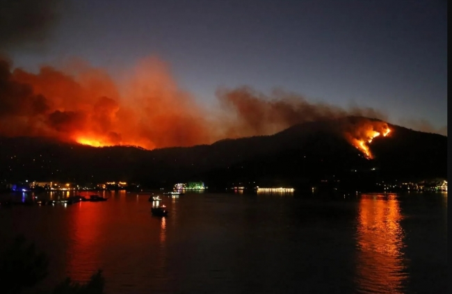 Yangında, bazı otellerin tedbir amaçlı boşaltıldı, bazı ev, araç ve iş makineleri de yangından zarar gördü.
