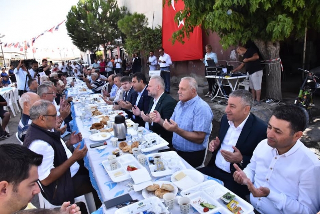Menemen’deki esnaf ve sanatkârları buluşturan Ahi Sofrası, İlçe Müftüsü Mehmet Seven’in dua okumasıyla sona erdi.