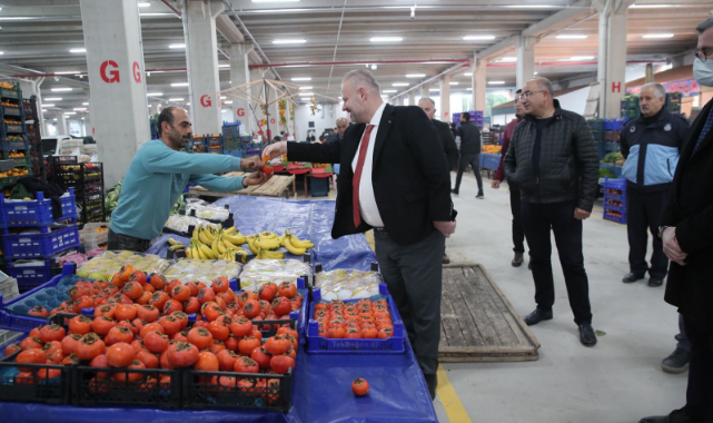 Belediye başkan yardımcılarıyla birlikte pazar yerini ziyaret eden Menemen Belediye Başkan Vekili Aydın Pehlivan, pazarcı esnafına hayırlı işler, bol kazançlar diledi.