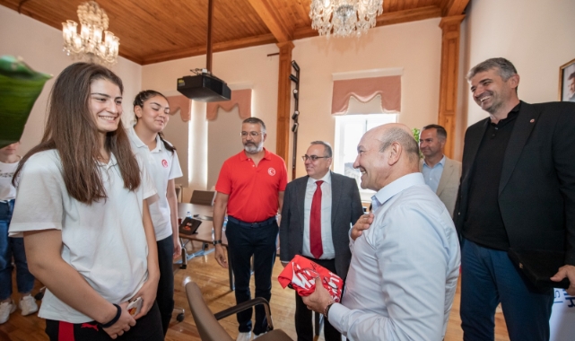 11-19 Ağustos 2023 tarihleri arasında İzmir'de düzenlenen 16 Yaş Altı Kızlar Avrupa Şampiyonası müsabakaları kapsamında 15 Ağustos Salı günü (yarın) Finlandiya ile maça çıkmaya hazırlanan milli takım oyuncuları İzmir Büyükşehir Belediye Başkanı Tunç Soyer’i ziyaret etti. Egemenlik Evi’nde yapılan toplantıya İzmir Büyükşehir Belediyesi Gençlik ve Spor Dairesi Başkanı Hakan Orhunbilge, ESHOT Genel Müdürü Erhan Bey, Türkiye Basketbol Federasyon As Başkanı Hüseyin Beşok, 16 Yaş Altı Kızlar Milli Takım Baş Antrenörü Olcay Orak, Takım Kaptanı Şeyma Yılık, Takım Menajeri Ceyda Kozluca Kabaran ve oyuncu Berfin Şahin katıldı. Takım kaptanı Şeyma Yılık, oyuncuların imzaladığı formayı günün anısına Başkan Soyer’e verdi. "BU MAÇI ALIN"