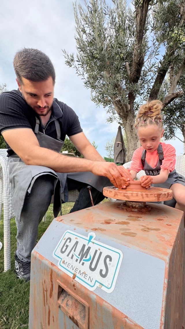 Menemen’de 4 ay önce açılışı yapılan FT Lotus Thermal Tredamark Collection by Wyhndam Oteli’nin bahçesinde gerçekleştirilen doğum gününde minikler, Dünya Çömlek Ustası Şampiyonlarından Oktay İde'nin himayesinde çömlek tornasının başına geçti.