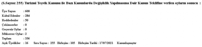 ‘Turizmi Teşvik Kanunu ile bazı Kanunlarda Değişiklik Yapılmasına Dair Kanun’ 17 Temmuz’da Meclis’te 284 kabule karşı 50 ret oyuyla geçmişti. Kanun 28 Temmuz’da Cumhurbaşkanı Tayyip Erdoğan’ın imzasıyla Resmi Gazete’de yayınlanarak yürürlüğe girmişti.