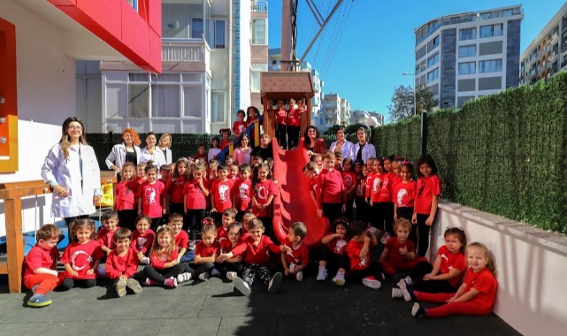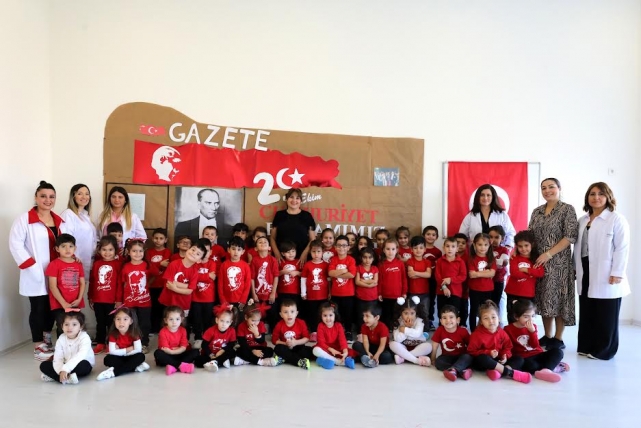 Narlıdere Belediyesi’nin çocukları güvenle geleceğe hazırladığı Nar Çiçekleri Anaokulları’nda 29 Ekim Cumhuriyet Bayramı heyecanı yaşandı. Nar Çiçekleri Anaokulları’nın Yaşar Kemal, Narlı ve Çatalkaya Şubesi’nde eğitim gören minikler, Cumhuriyetimizin 99.yılını, ay yıldızlı kıyafetleriyle hazırladıkları gösteriyle kutladı. Minik öğrencilerin geçmiş dönem 29 Ekim kutlamalarında kullanılan müziklerle hazırladığı dans gösterisi, adeta eski bayramların coşkusunu yaşattı. Narlıdere’nin Nar Çiçekleri, öğretmenleri eşliğinde sınıflarını bayrama özel olarak süslemeyi de ihmal etmedi. Miniklerin hazırladığı 29 Ekim Gazetesi’nde Gazi Mustafa Kemal Atatürk’ün Gençliğe Hitabesi ve “Ey yükselen yeni nesil, istikbal sizindir. Cumhuriyet'i biz kurduk, onu yükseltecek ve yaşatacak sizsiniz” sözleri yer aldı.