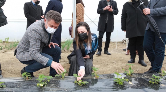 Başkan Ceritoğlu Sengel’in tarım alanındaki çalışmalarını inceleyen Sarıbal, efes selçuk Belediyesi’nin kendi öz kaynaklarıyla inşa ettiği Efes Tarlası tarım merkezini ziyaret etti.