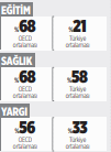 Eğitim, sağlık ve yargı alanlarındaki memnuniyetin Türkiye’deki oranı ve OECD ortalaması şöyle kaydedildi: