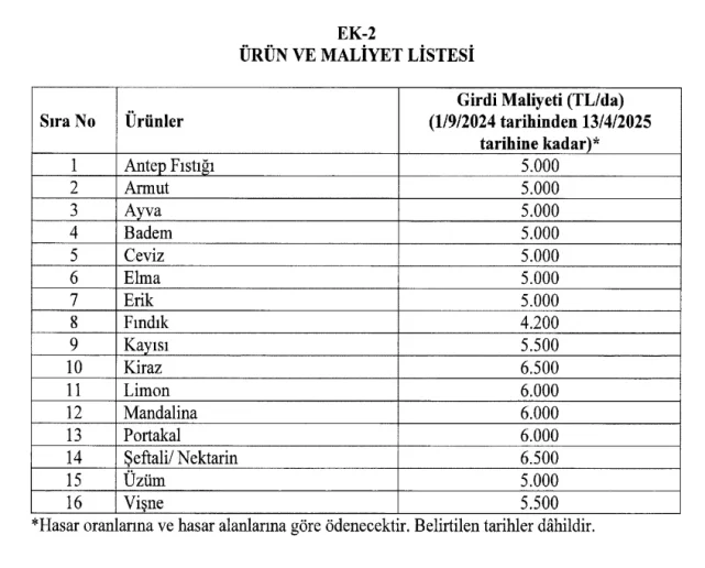 Cumhurbaşkanı Recep Tayyip Erdoğan’ın imzasıyla Resmî Gazete’de yayımlanan karara göre, 2025 yılında zirai don sebebiyle ürünleri zarar gören çiftçilere devlet destek olacak.Karar kapsamında, İzmir’in de aralarında bulunduğu 65 ilde en az yüzde 20 oranında ürün kaybı yaşayan üreticilere destekleme ödemesi yapılacak.Karara göre, üzüm, kiraz, incir, mandalina ve zeytin üretiminin yoğun olduğu İzmir’de don zararının etkilerini gören çiftçiler, Çiftçi Kayıt Sistemi’ne (ÇKS) kayıtlı olmak kaydıyla destekten faydalanabilecekler.1 Şubat – 13 Nisan 2025 tarihleri arasında yaşanan zirai don olayları sebebiyle ürünlerinde yüzde 20 ve üzeri hasar belirlenen üreticilerin girdi maliyetleri, hasar alanı ve hasar oranına göre ödenecek.Destekleme ödemeleri Cumhurbaşkanlığı bütçesinden karşılanacak ve Ziraat Bankası aracılığıyla üreticilere gönderilecek. Ödemelerden herhangi bir kesinti yapılmayacak.Üzüm bağlarının yoğun olduğu Kemalpaşa ve Menemen, kiraz üretimiyle öne çıkan Kemalpaşa ve Bayındır, mandalina bahçeleriyle tanınan Menderes ve Seferihisar’daki üreticilerin destekten yararlanması öngörülüyor.Faydalanabilecek kişiler ise şu şekilde:- Tarım sigortası yaptırmamış olanlar,- Tarım sigortası olup don teminatı bulunmayanlar,- Tarım sigortası yaptırmış olmasına rağmen mevzuat gereği tazminat alamayanlar destek ödemesinden faydalanabilecek.