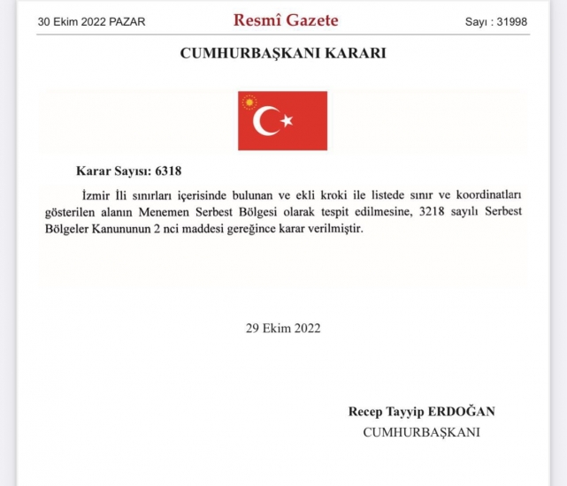 Menemen ilçemizde kurulacak olan Menemen Serbest Bölgesi kararı Cumhurbaşkanımız Sayın Recep Tayyip Erdoğan tarafından onaylanarak Resmi Gazete'de yayımlandı. Kentimize katma değer katacak bu gelişmenin hayırlı olmasını diliyorum. pic.twitter.com/r7bABGCOKc
