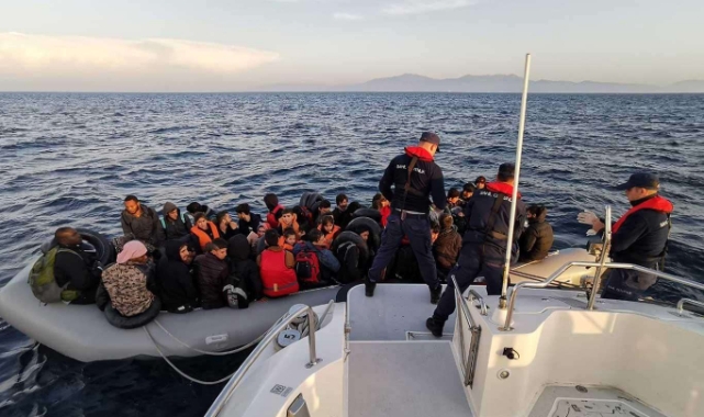 Sahil Güvenlik Komutanlığına bağlı ekip İzmir’in Çeşme ve Seferihisar açıklarında 4 lastik botta düzensiz göçmenler olduğu bilgisinin alınması üzerine harekete geçti.