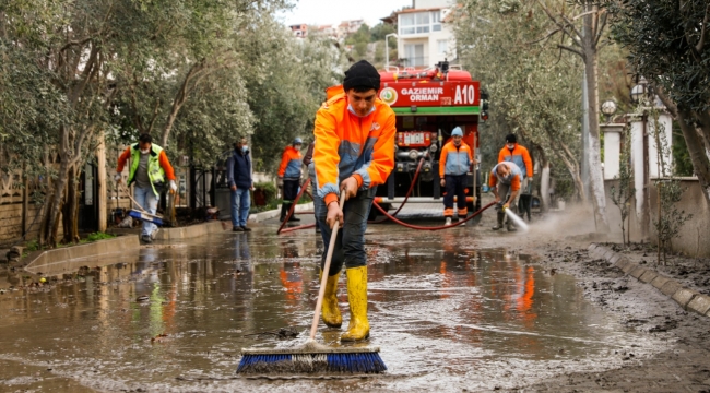 seferihisar belediyesi Temizlik İşleri'nden Fen İşleri ekiplerine kadar birçok birim hasar alan evlerde çalışmalarda bulundu. Seferihisar Belediye Başkanı İsmail Yetişkin’in koordinatörlüğünde temizlik çalışmaları sürdürülüyor. Başkan Yetişkin “Öncelikle site sakinlerine geçmiş olsun dileklerimi iletiyorum. Tüm ekiplerimiz zarar gören evleri eski haline getirebilmek için sahada. Özveriyle çalışan mesai arkadaşlarıma da teşekkür ediyorum. En kısa sürede evlerde meydana gelen hasarları onaracağız” dedi.