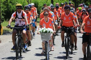 Selçuk’taki birçok bisiklet gruplarını da bir araya getiren Şen Şeftali Şenliği renkli görüntülere sahne oldu. Belevi şeftali şenliği, 200 bisikletçinin katıldığı ve Selçuk Belediye Başkanı Filiz Ceritoğlu Sengel’in Belediye Hizmet binası önünden start vererek "Şeftaliyle Pedalla" adlı bisiklet turu ile başladı. Başkan Sengel’in de katıldığı bisikletçiler, Belevi girişinde alkışlarla karşılandılar.