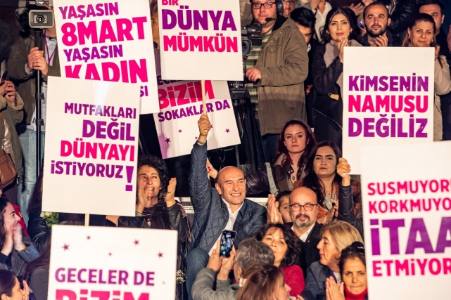 İzmir Büyükşehir Belediye Başkanı Tunç Soyer 8 Mart Dünya Kadınlar Günü nedeniyle açıklama yaptı. Açıklamada savaşın gölgesinde barış, İstanbul Sözleşmesi ve kadın istihdamı vurguları öne çıktı. Toplumsal cinsiyet eşitliğinin hem toplumsal hem de küresel barış için elzem olduğunu belirten Başkan Tunç Soyer, “Kadın erkek eşitliğini tesis edemezsek ne adil bir dünyayı ne de barışı mümkün kılabiliriz. Ne kadın cinayetlerini engelleyebilir, ne de ülkeleri bombalanan kadınların ve çocukların ülkelerini terk etmek zorunda kalmasının önüne geçebiliriz. Bunun için kadınların öncülüğünde acilen toplumsal cinsiyet eşitliğini önceleyen politikaların geliştirilmesi ve bu politikaların harfiyen uygulanması şart” dedi.