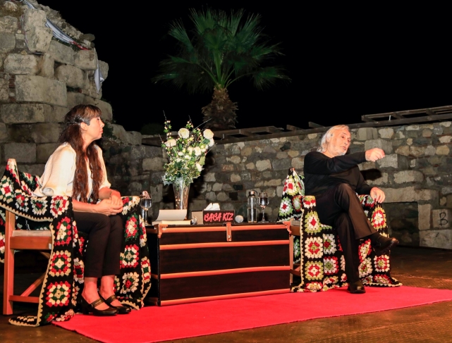Kaleiçi'nde hüzünlü ve eğlenceli saatlerİki perdelik oyunda; Müjdat Gezen'le Hollanda'da yaşayan kızı Elif’in doğumundan itibaren ki hüzünlü ve komik anıları 2 saat boyunca konukları kah güldürdü kah duygulandırdı.Seferihisar Belediye Başkanı İsmail Yetişkin oyunun ardından Kaleiçini dolduran tüm sanatseverler adına Gezen ailesine çiçekle teşekkür etti.