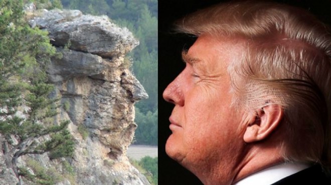 Yandan fotoğraflanan kayalık yapının ABD başkanı Trump'ın burnu, dudakları ve saçları ile benzerlik gösteriyor.