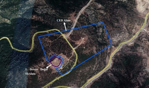 Şirketin, mermer ocağı açmak için yaptığı ilk başvuru ÇED alanının içinde 1. derece doğal SİT bulunmasından dolayı geri çevrildi. Şirket bunun üzerine 33,88 hektarlık ÇED alanını 32,06 çekti ve ‘Uyuzdere Vadisinde Yer Alan 3 Nolu Mağaranın Belirtildiği 1. Derece Doğal Sit Alanı’ ile arasında 20 metrelik bir tampon bölge bıraktı.