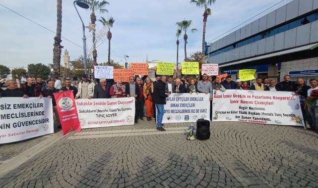 ANIL ARABACI / EGE'YE BAKIŞ - İzmir'de Seyyar Satıcılar Derneği bugün Konak Meydanı’nda basın açıklaması gerçekleştirildi. Basın açıklamasına Menderes Belediye Başkan Aday Adaylığını açıklayan Sokak Ekonomisi Uzmanı Osman Sirkeci’de katıldı.