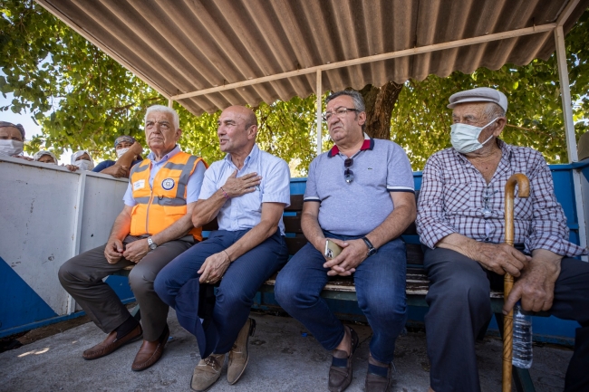 Heyet yangında zarar gören köylerde muhtarlarla bir araya geldi. Başkan Tunç Soyer, “Biz İzmir Büyükşehir Belediyesi'nin imkanlarını seferber etmeye hazırız. Hayvancılıksa hayvancılık, zeytincilikse zeytincilik, ürününü satın almaksa satın almak. Biz ne gerekiyorsa yapmaya hazırız. Tespitlerden sonra elimizden ne geliyorsa yapacağız. Evi tamir ettirebilirsin tamam ama tarımı nasıl sürdüreceksin? Parayı nerden kazanmaya devam edeceksin? Mesele orada. Burada biz varız. Biz bu felaketin sonuçlarını hafifletebilmek için, zararı azaltmak için ne gerekiyorsa yapacağız. Kalbimiz, aklımız sizinle” diye konuştu.